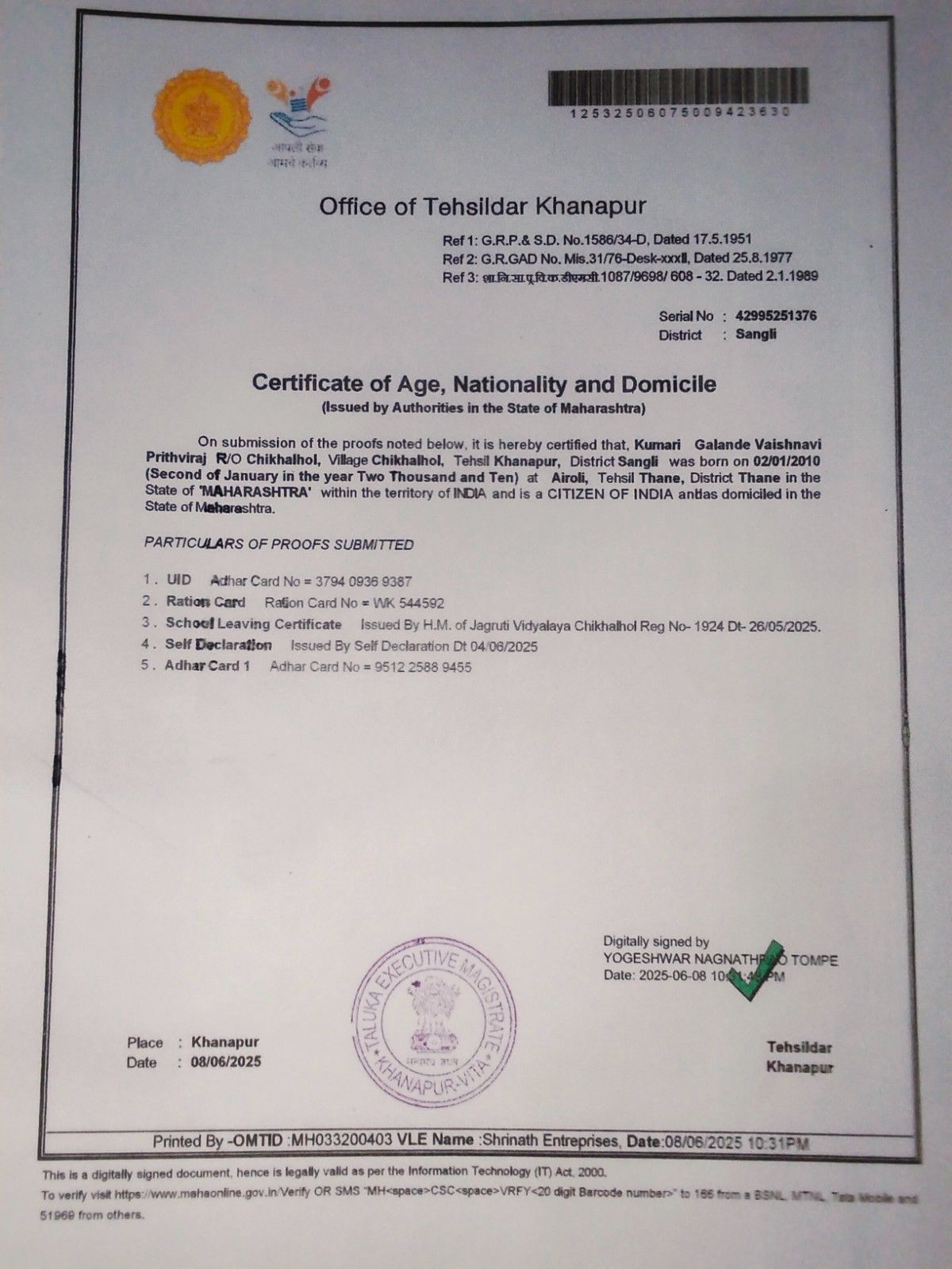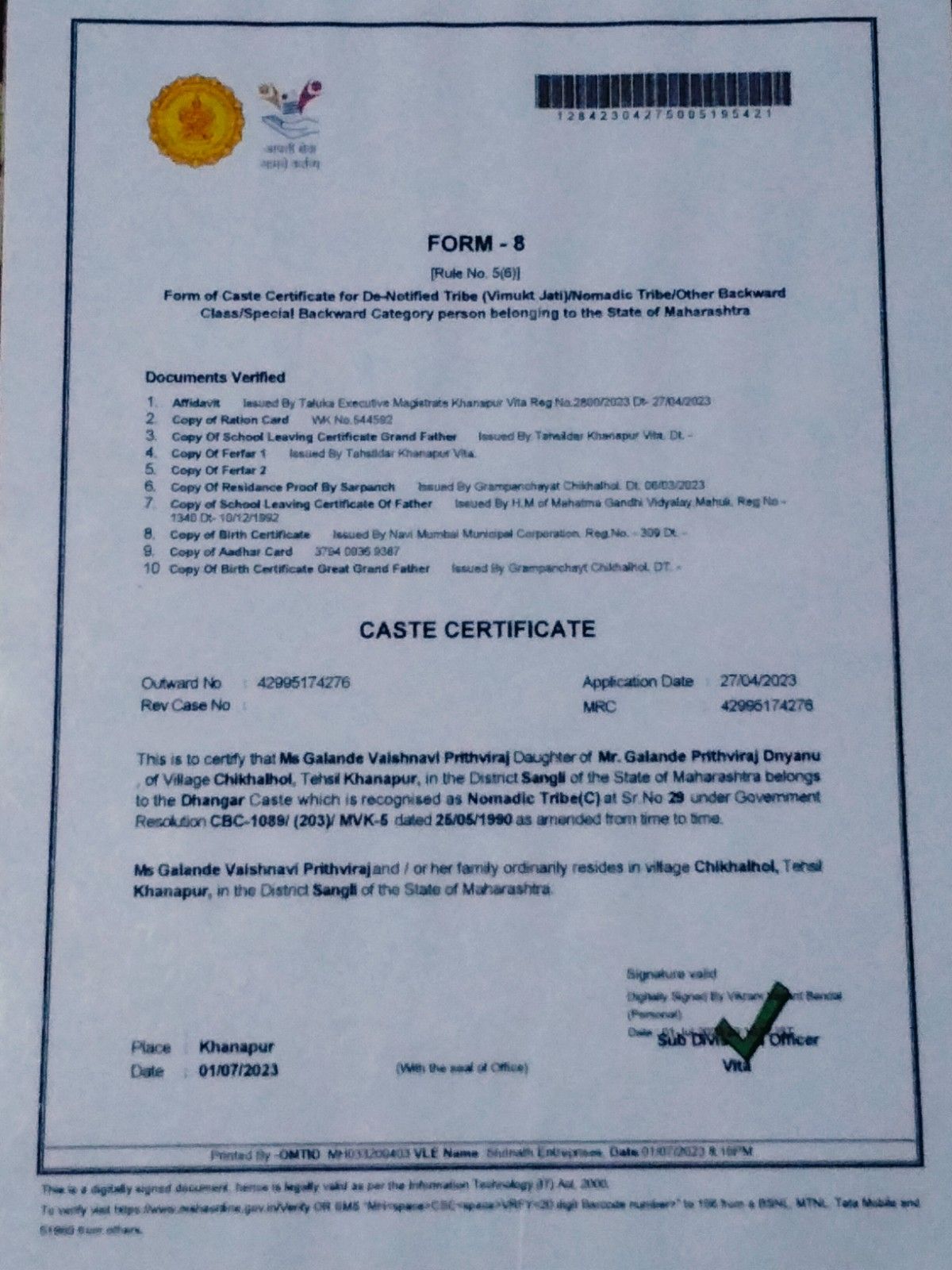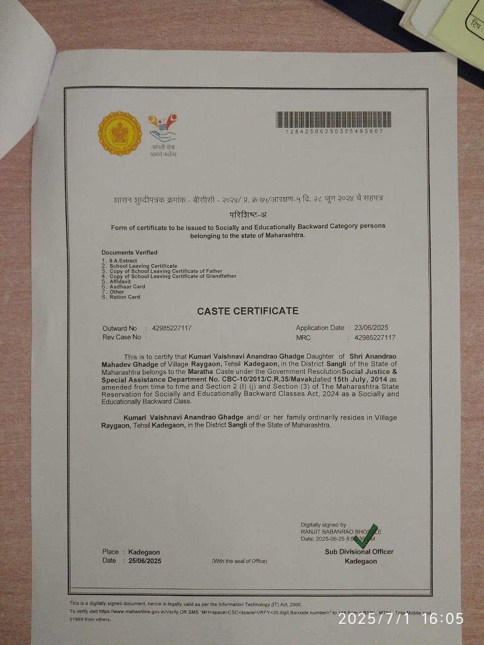 12/24/2025 9:39 PM 120446 AIT-2500016_CasteCertificate.jpg