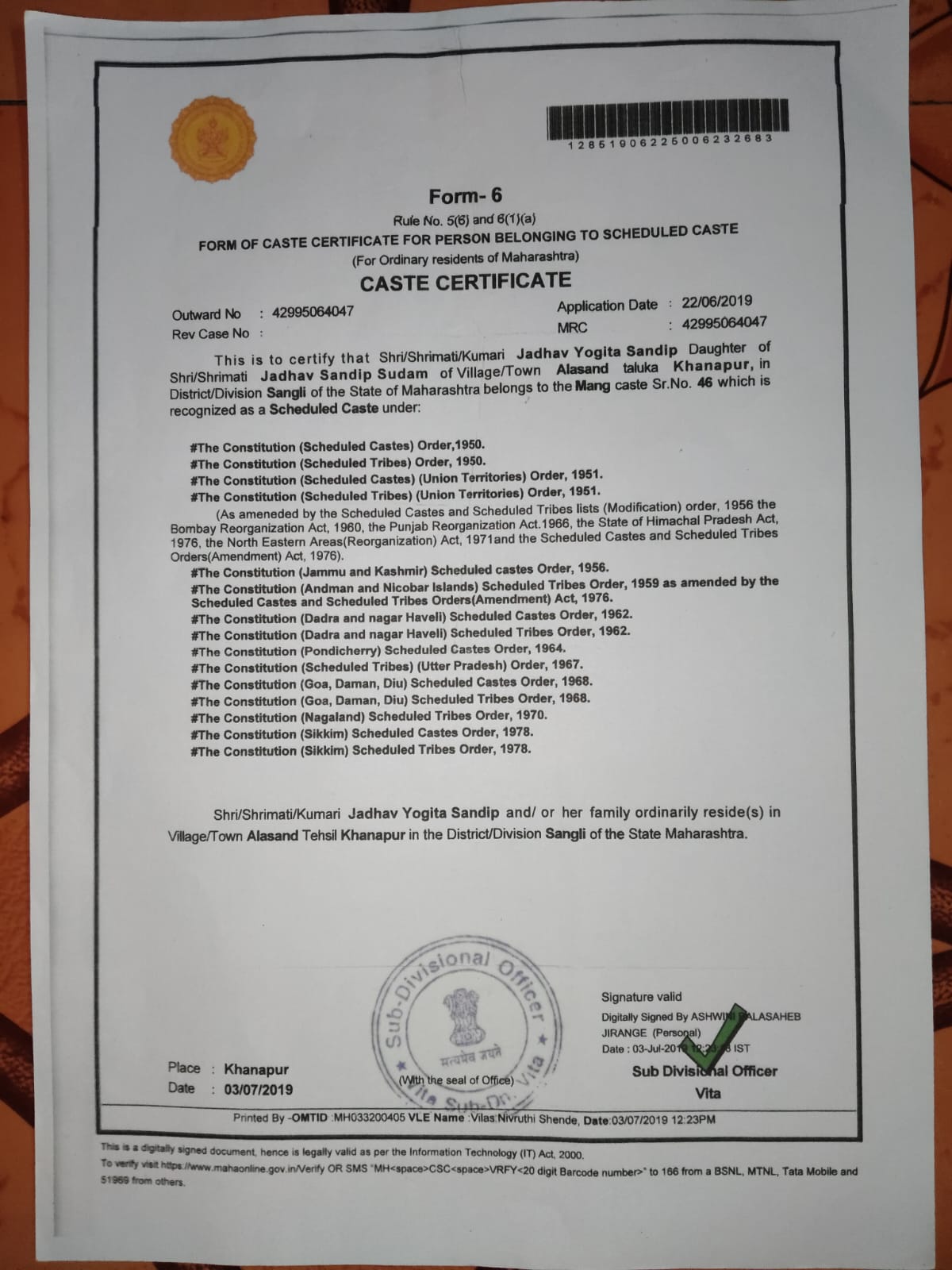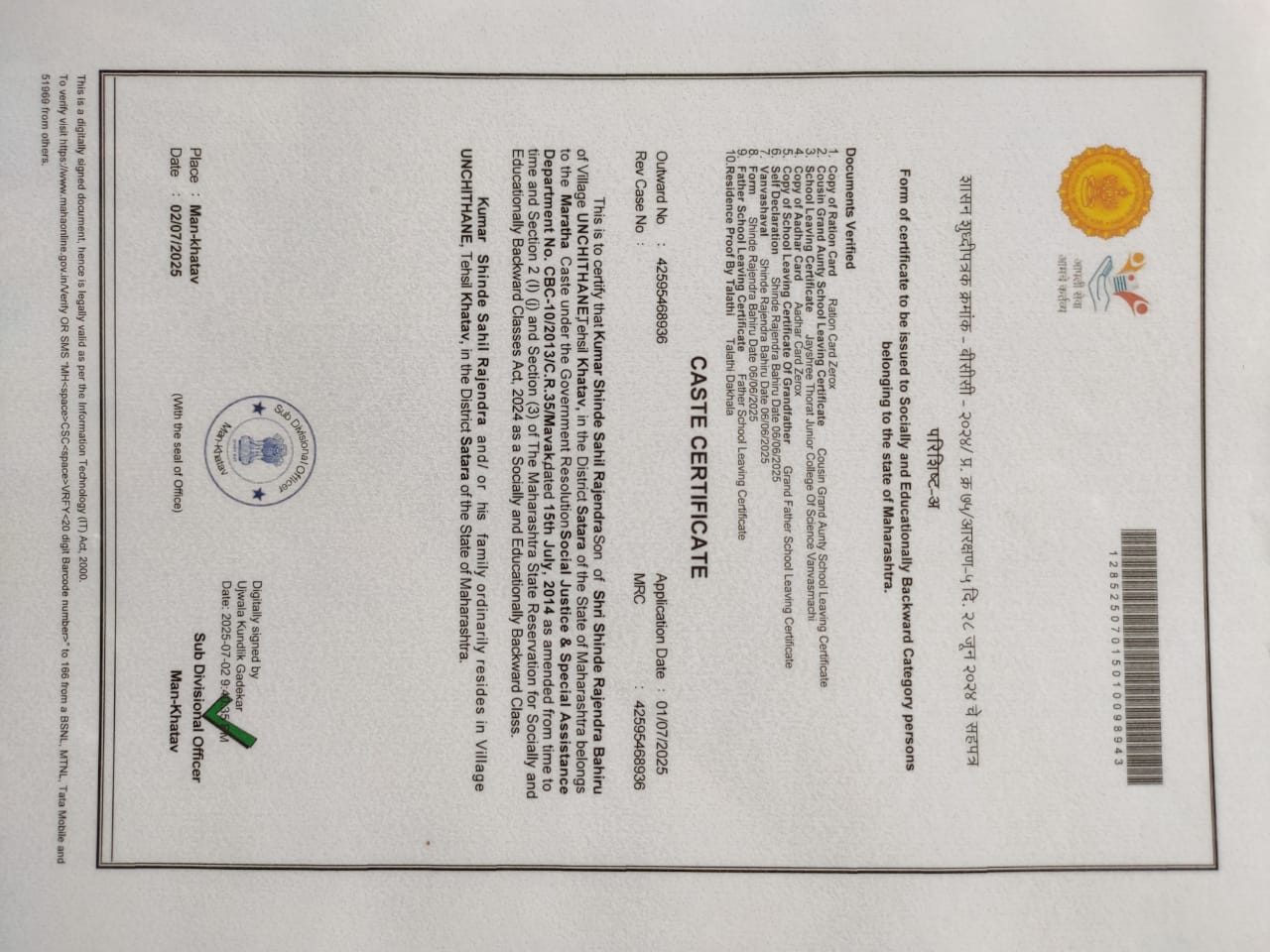 12/24/2025 9:46 PM 112018 AIT-2501157_CasteCertificate.jpg