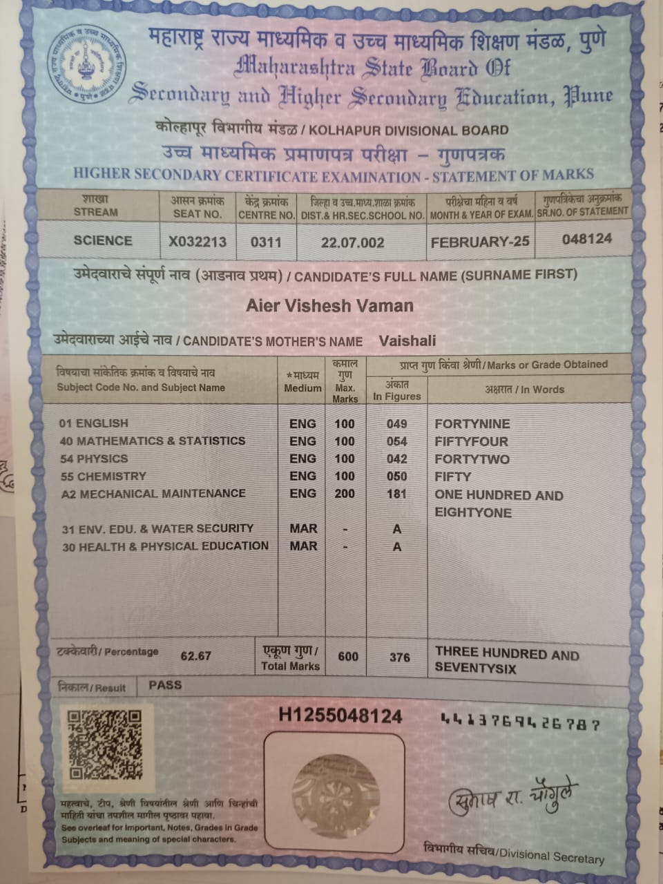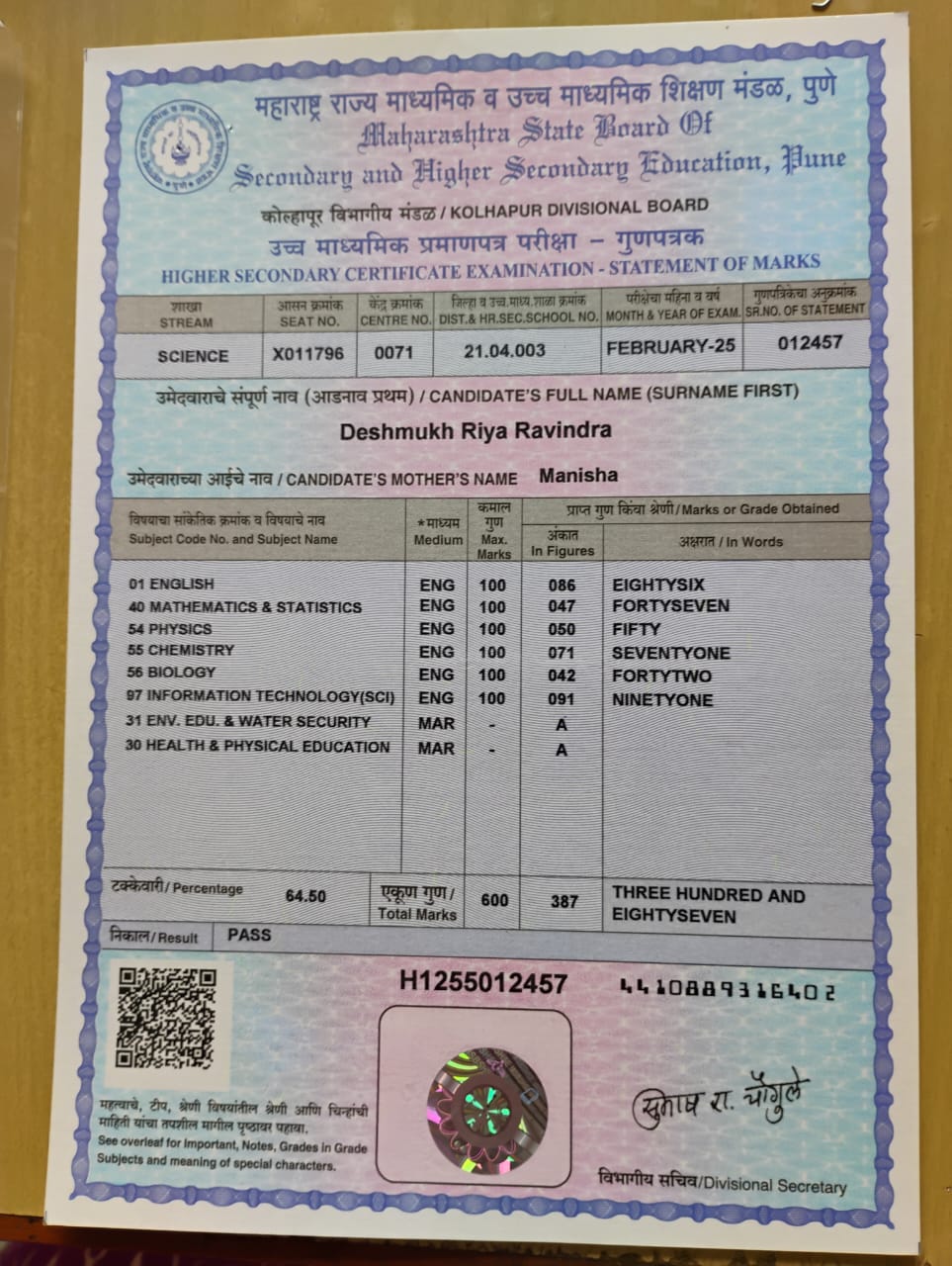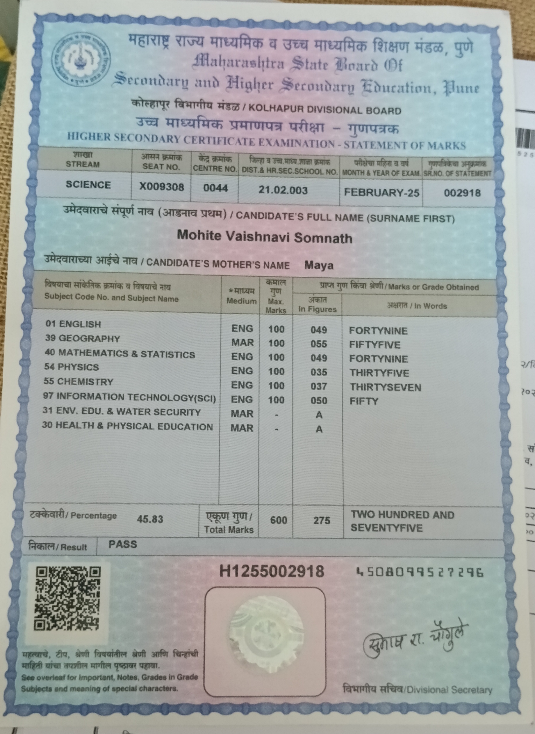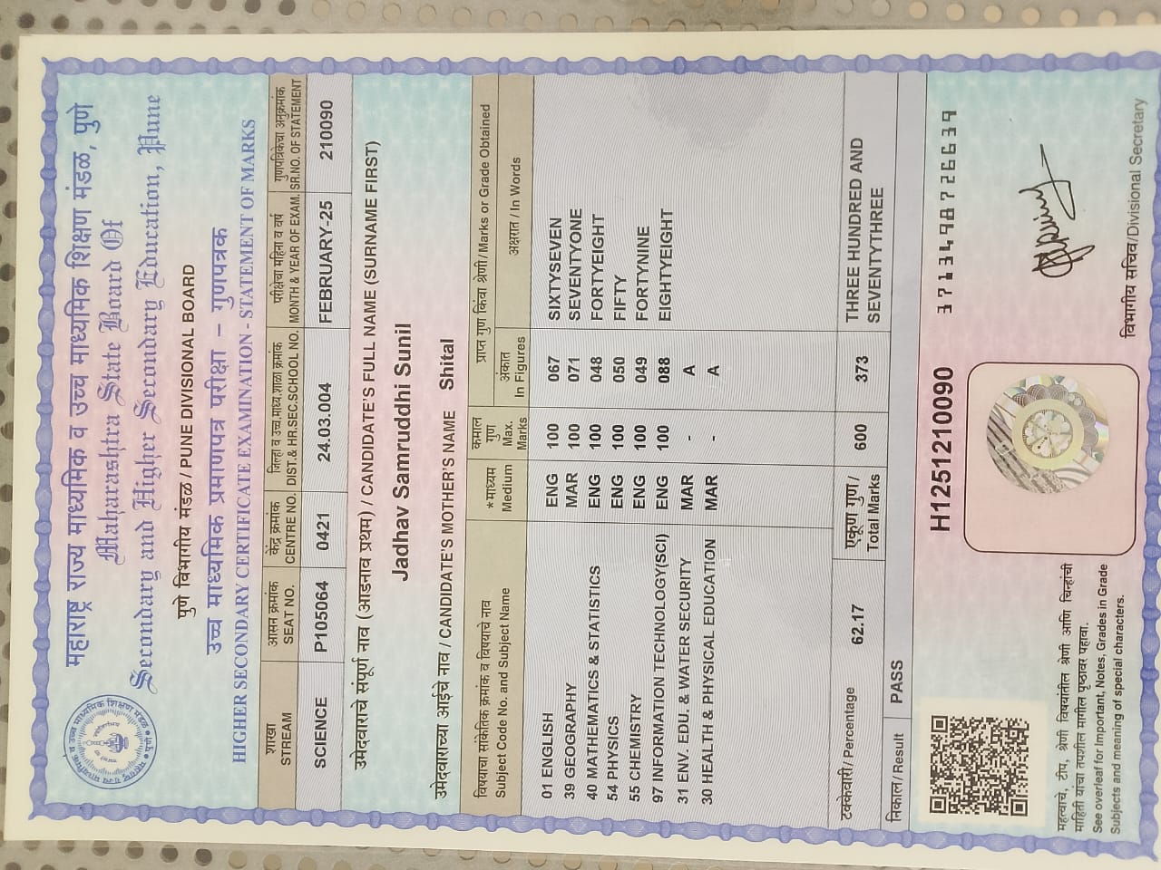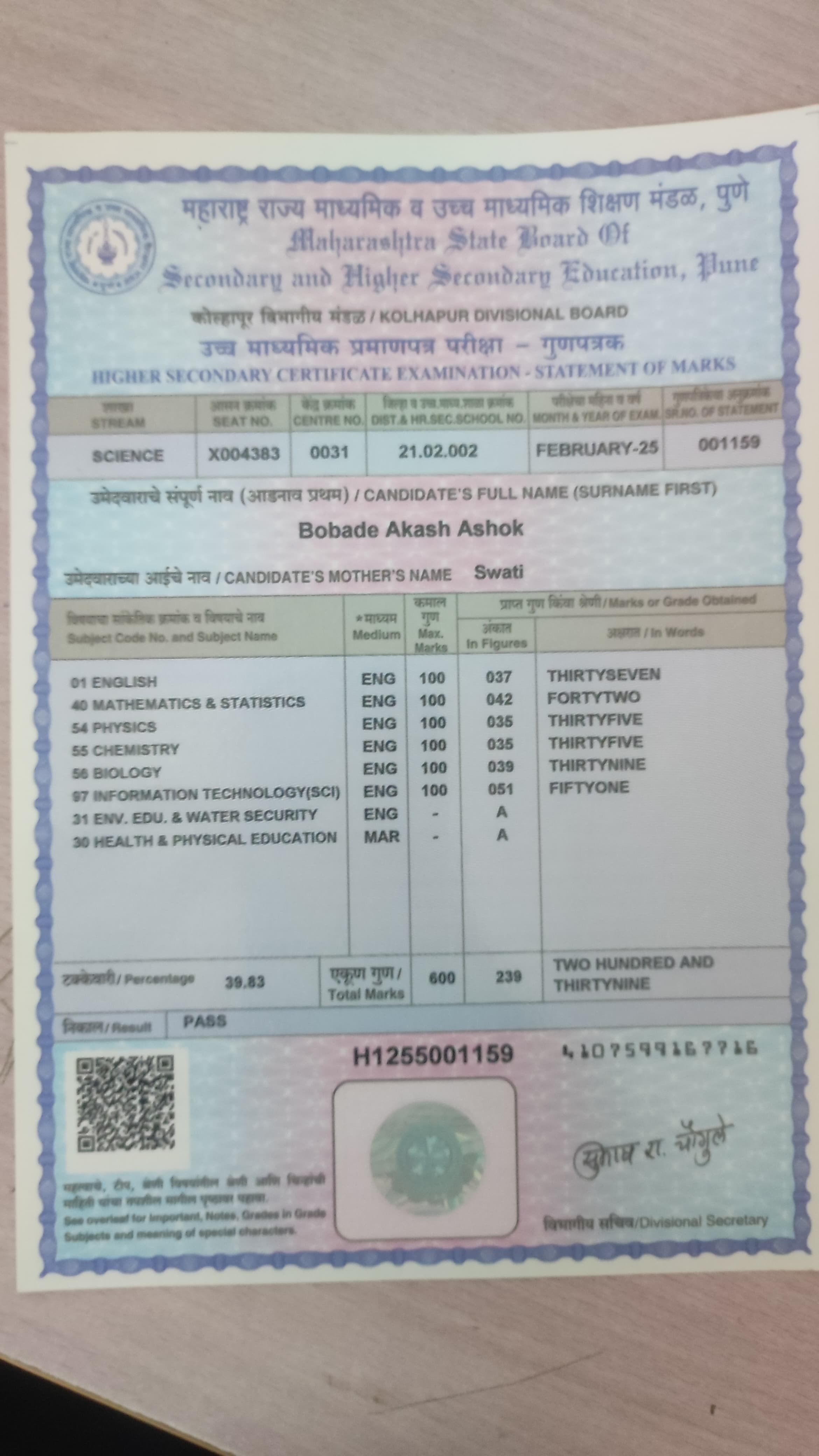 12/24/2025 9:46 PM 214208 AIT-2501169_HSCMarkSheet.jpg