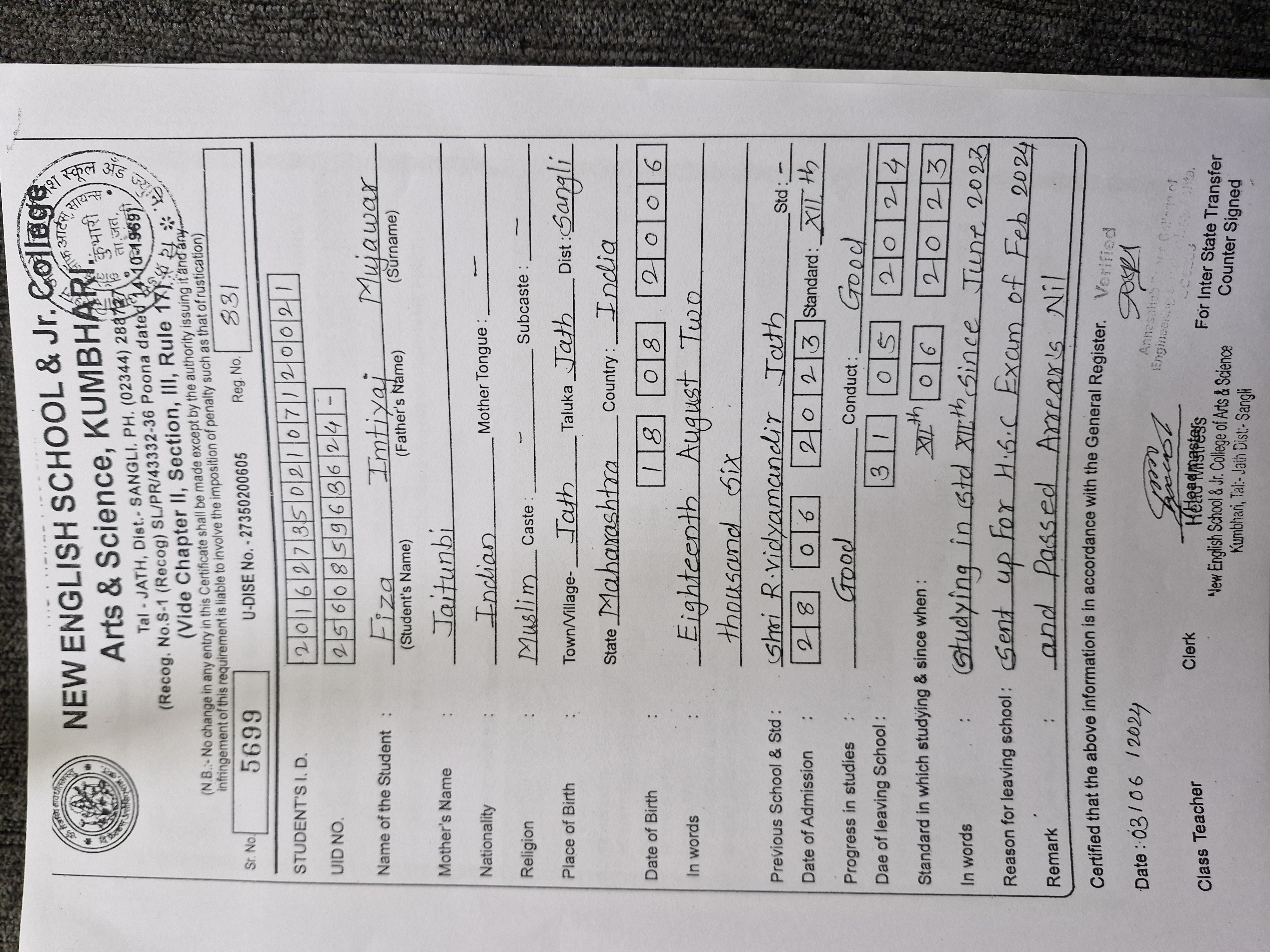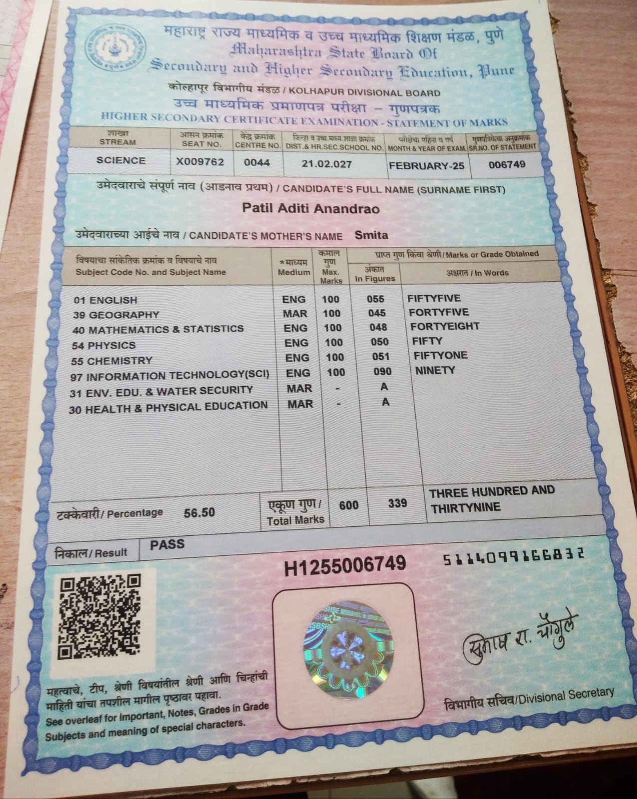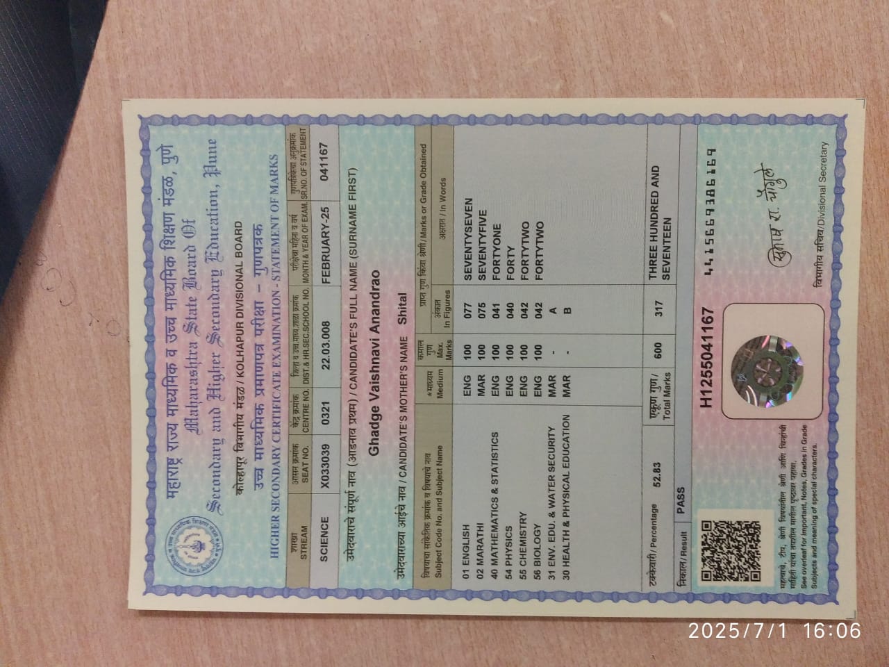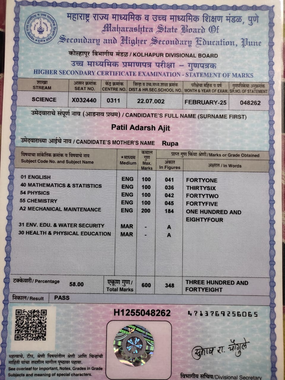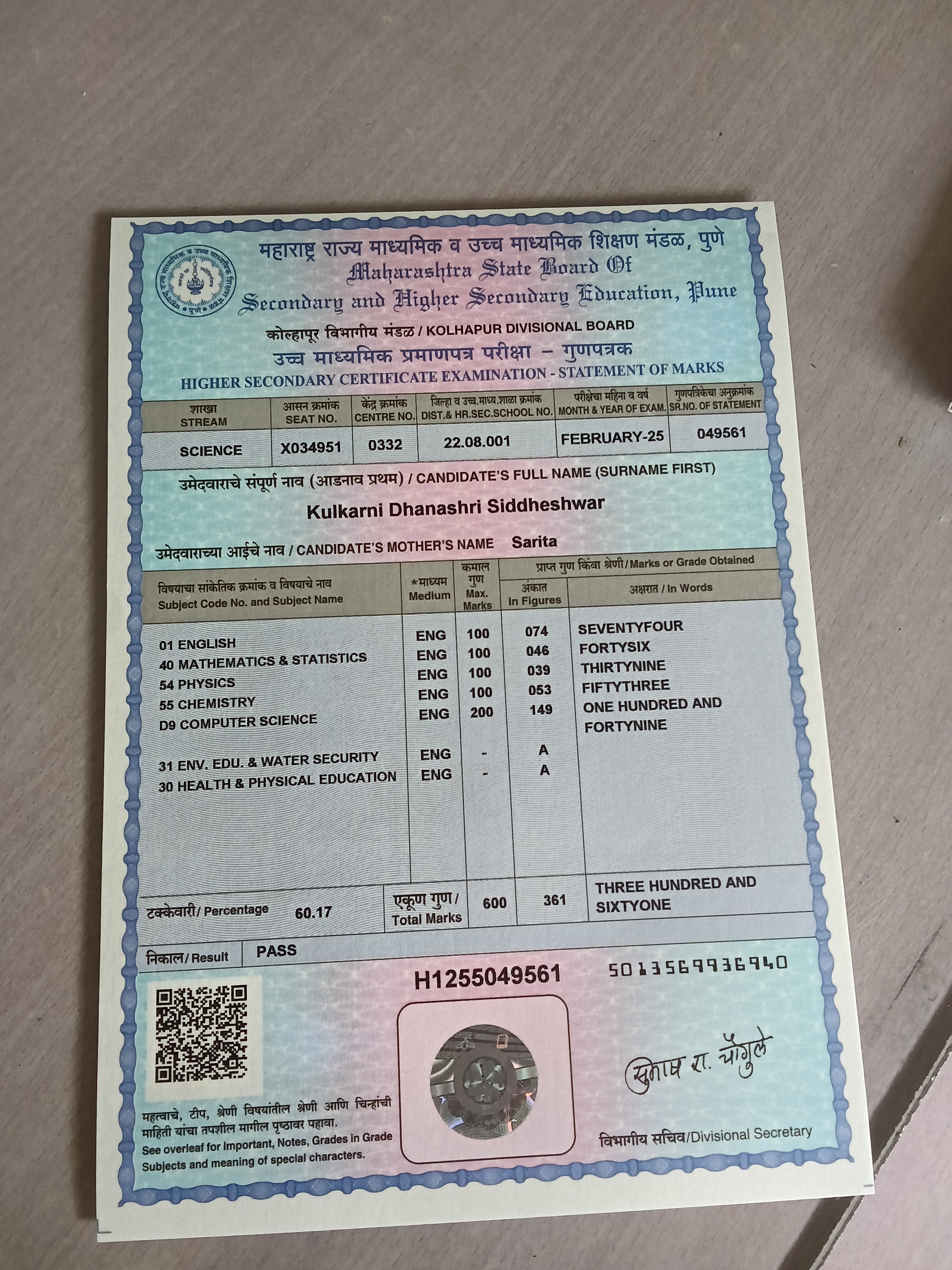 12/24/2025 9:46 PM 214208 AIT-2501169_HSCMarkSheet.jpg