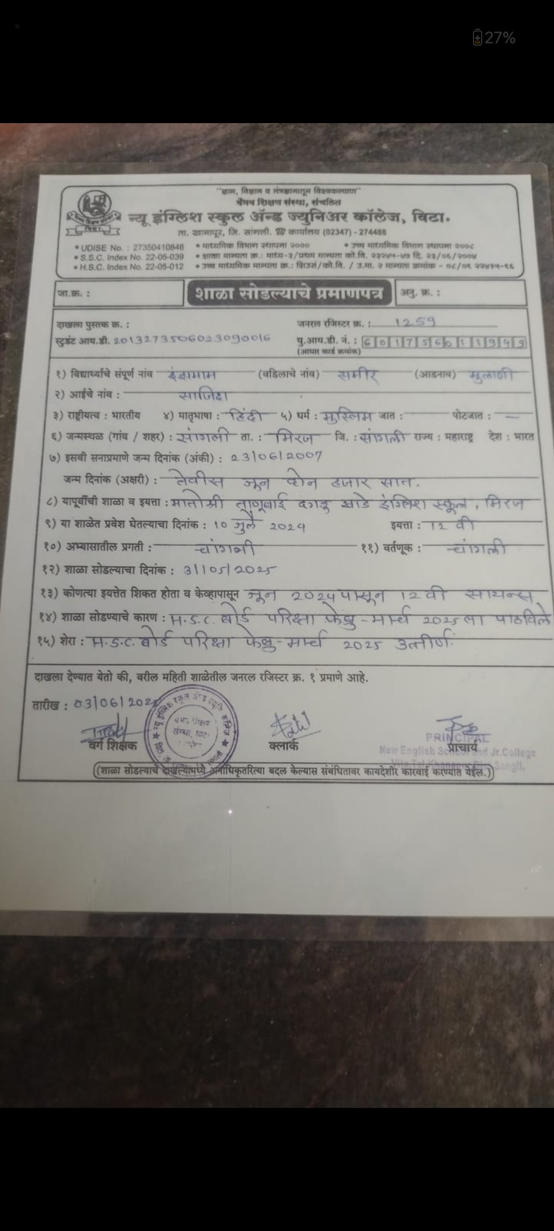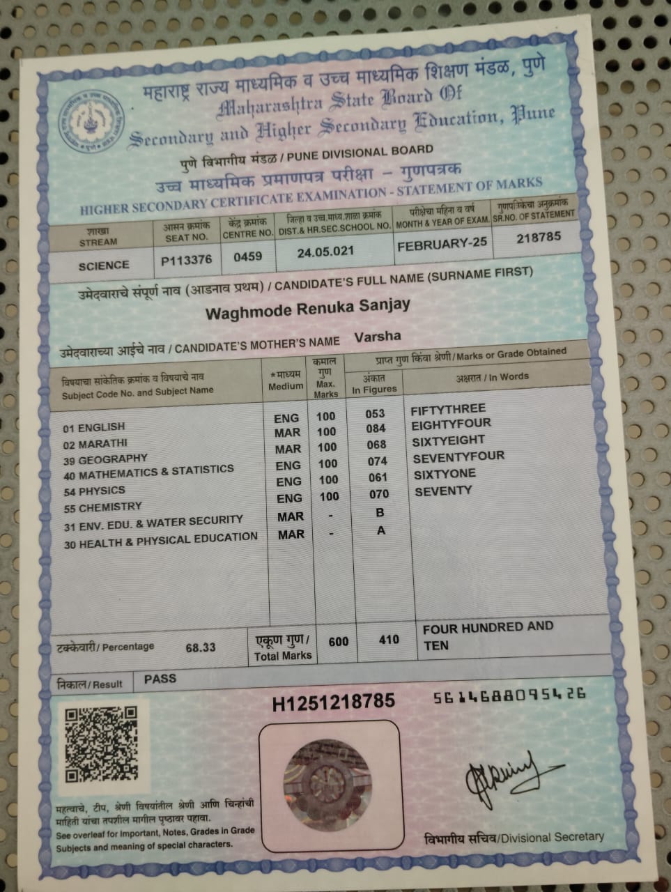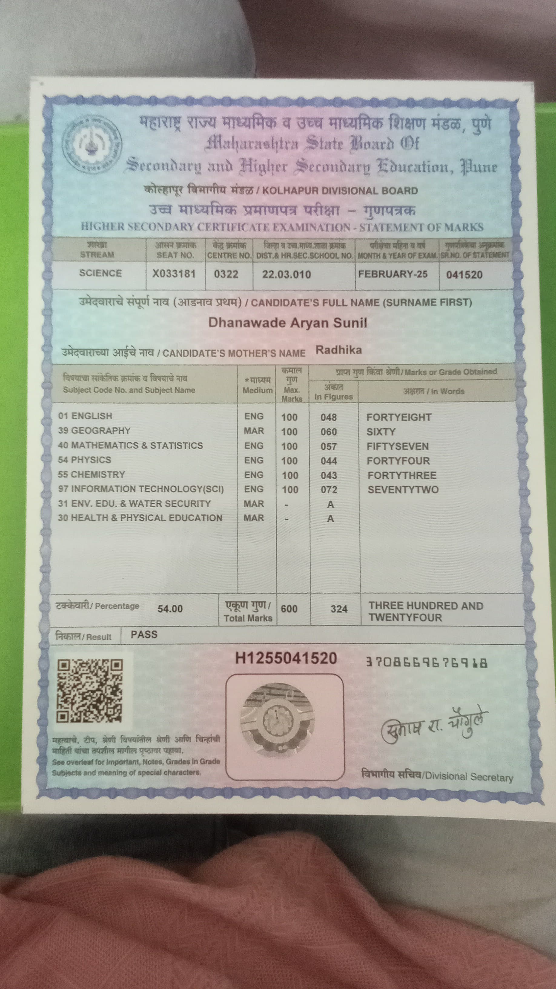 12/24/2025 9:46 PM 185683 AIT-2501157_HSCMarkSheet.jpg