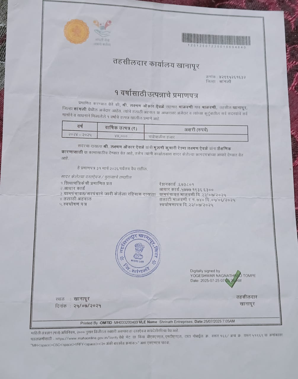 12/24/2025 9:46 PM 131556 AIT-2501166_IncomeCertificate.jpg