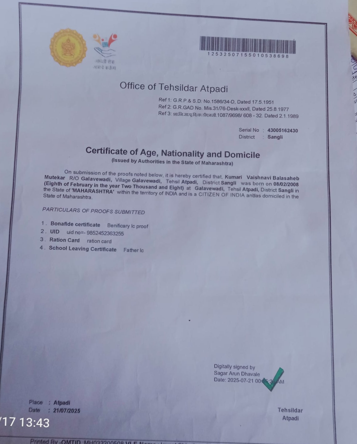 12/24/2025 9:46 PM 97741 AIT-2501160_CasteCertificate.jpg