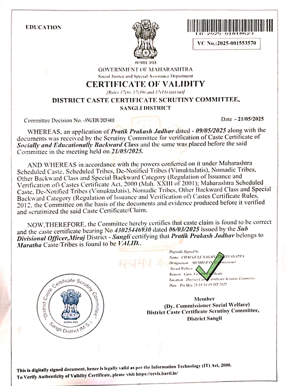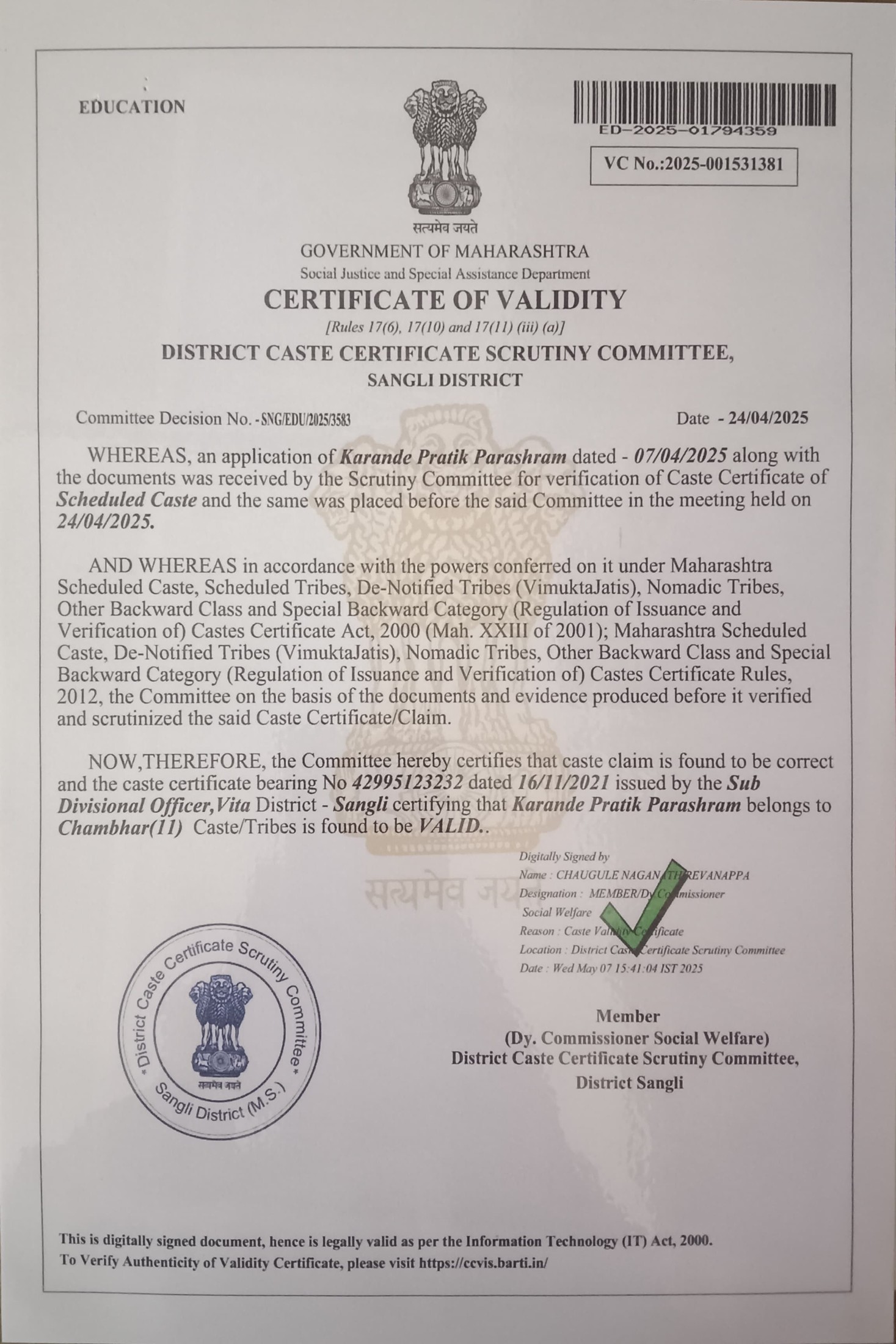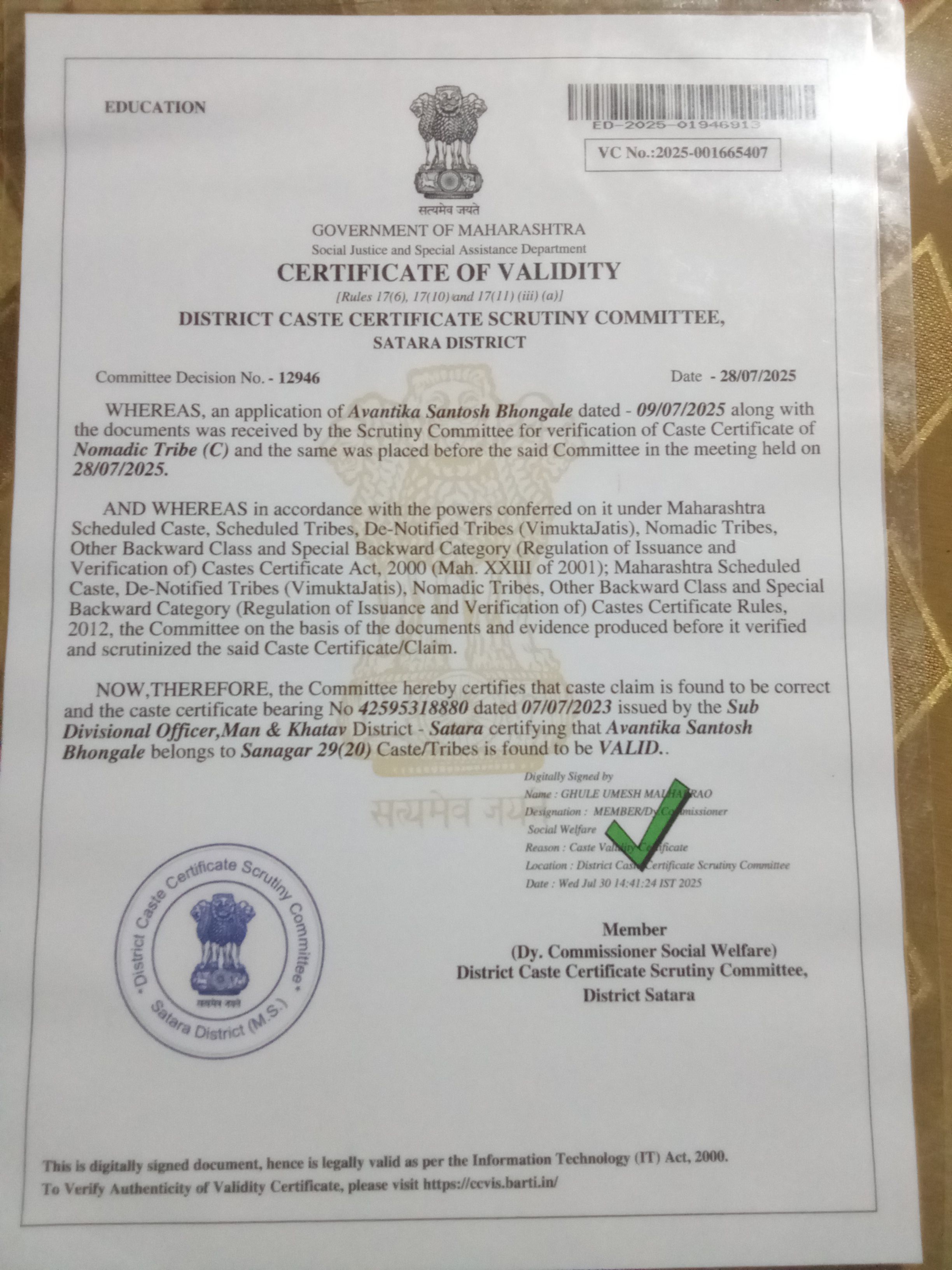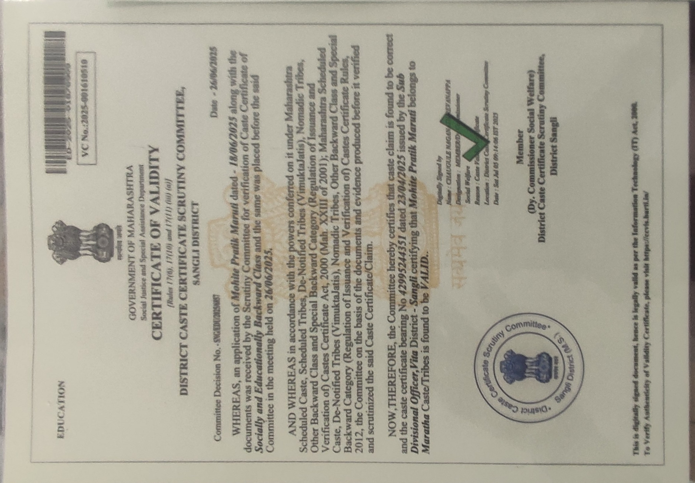 12/24/2025 9:46 PM 62544 AIT-2501155_CasteCertificate.pdf