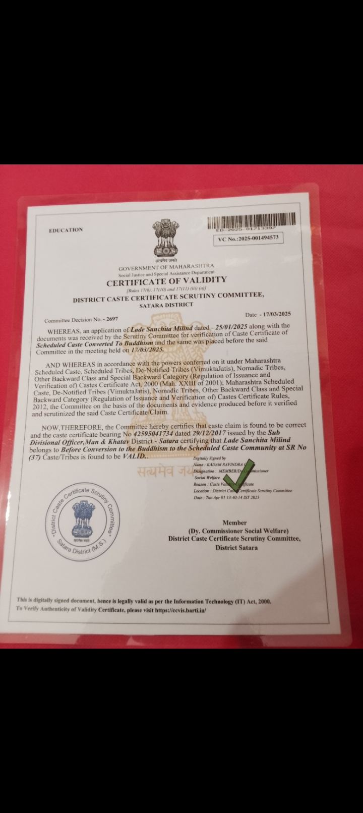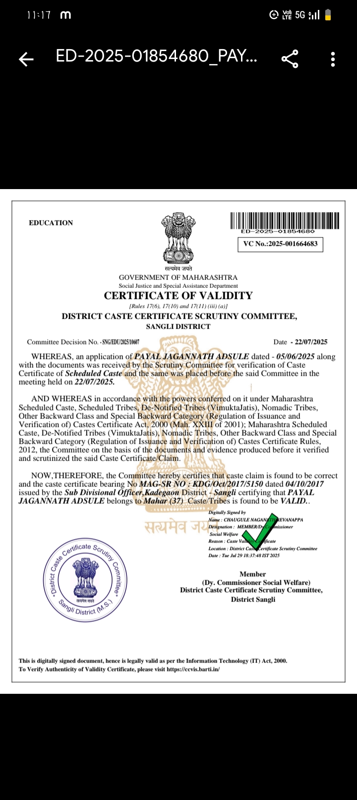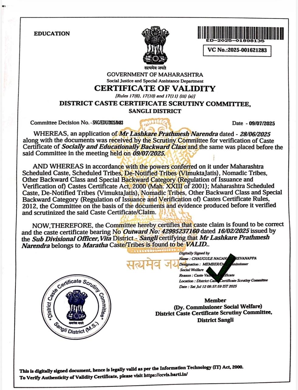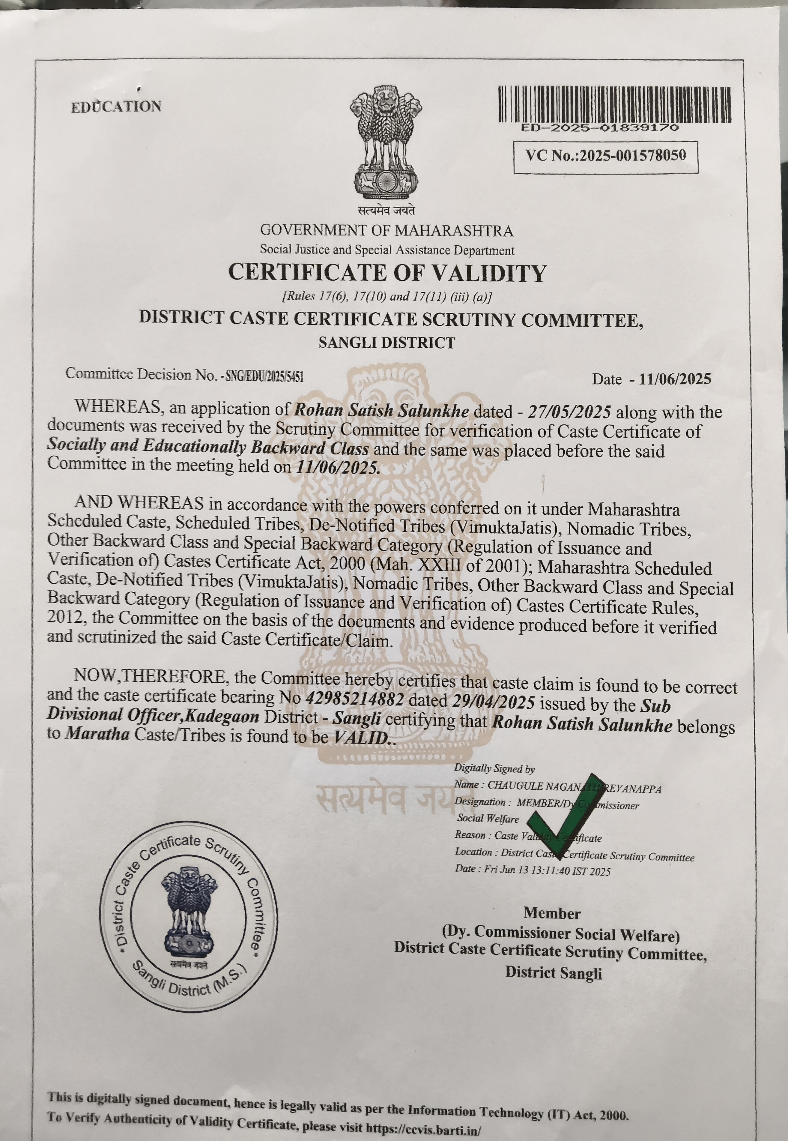 12/24/2025 9:46 PM 62544 AIT-2501155_CasteCertificate.pdf