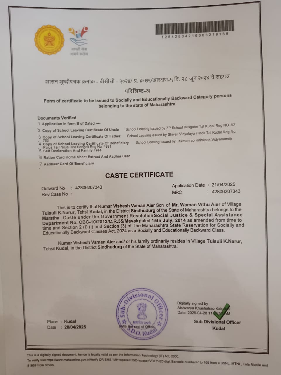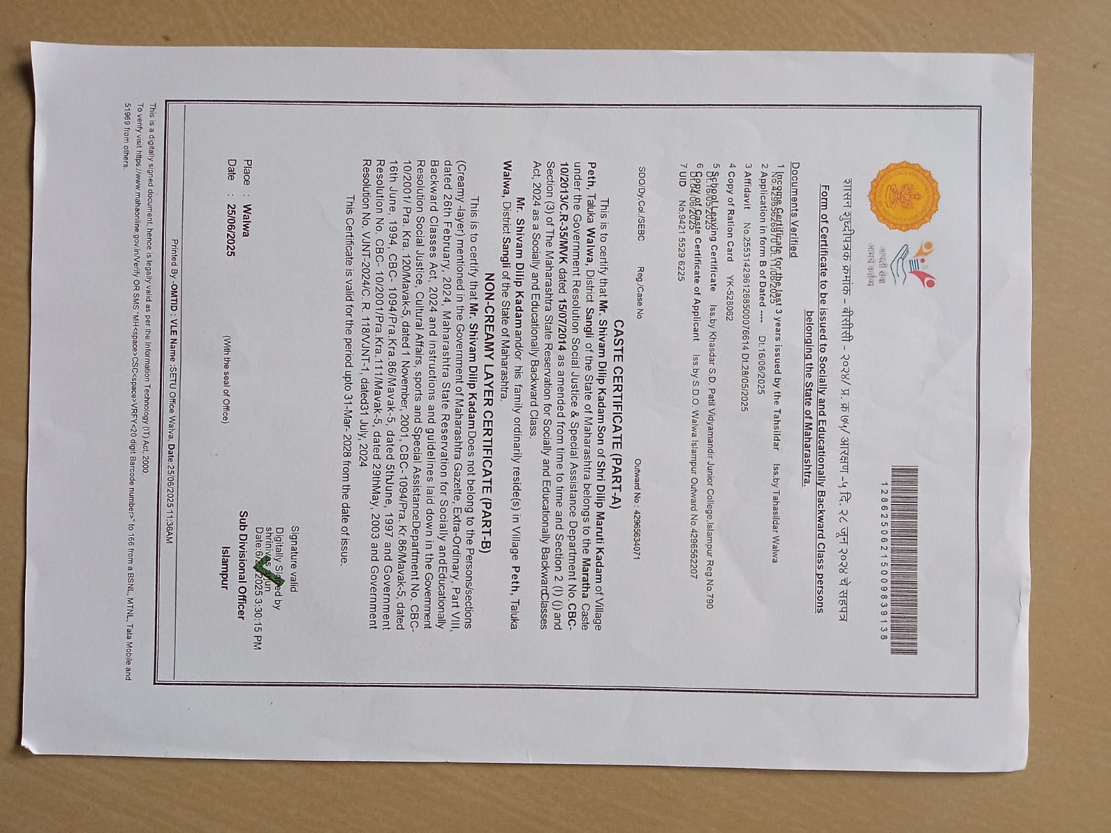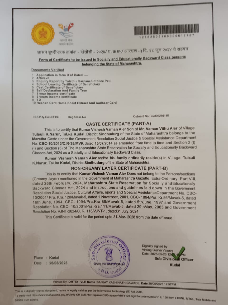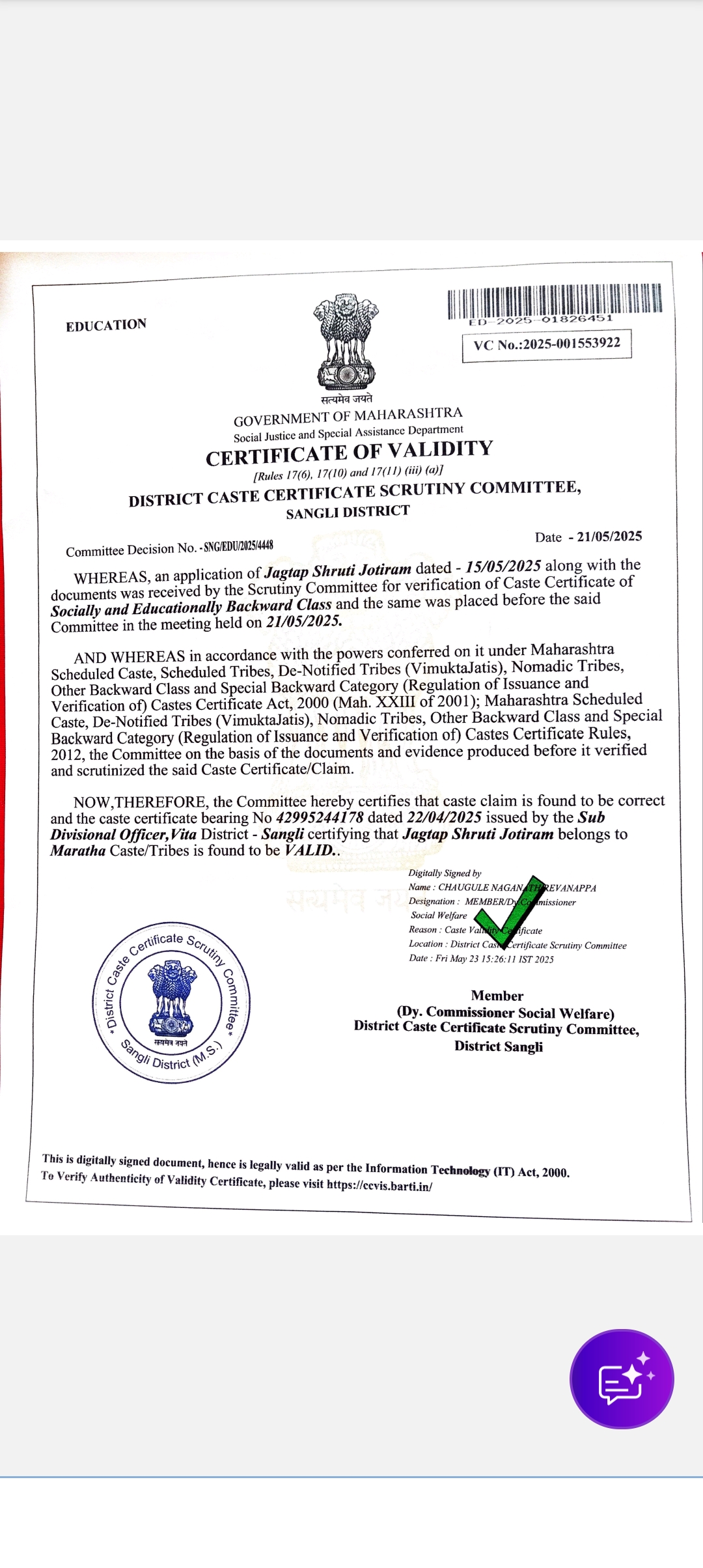 12/24/2025 9:40 PM 3077541 AIT-2500227_CasteCertificate.jpg