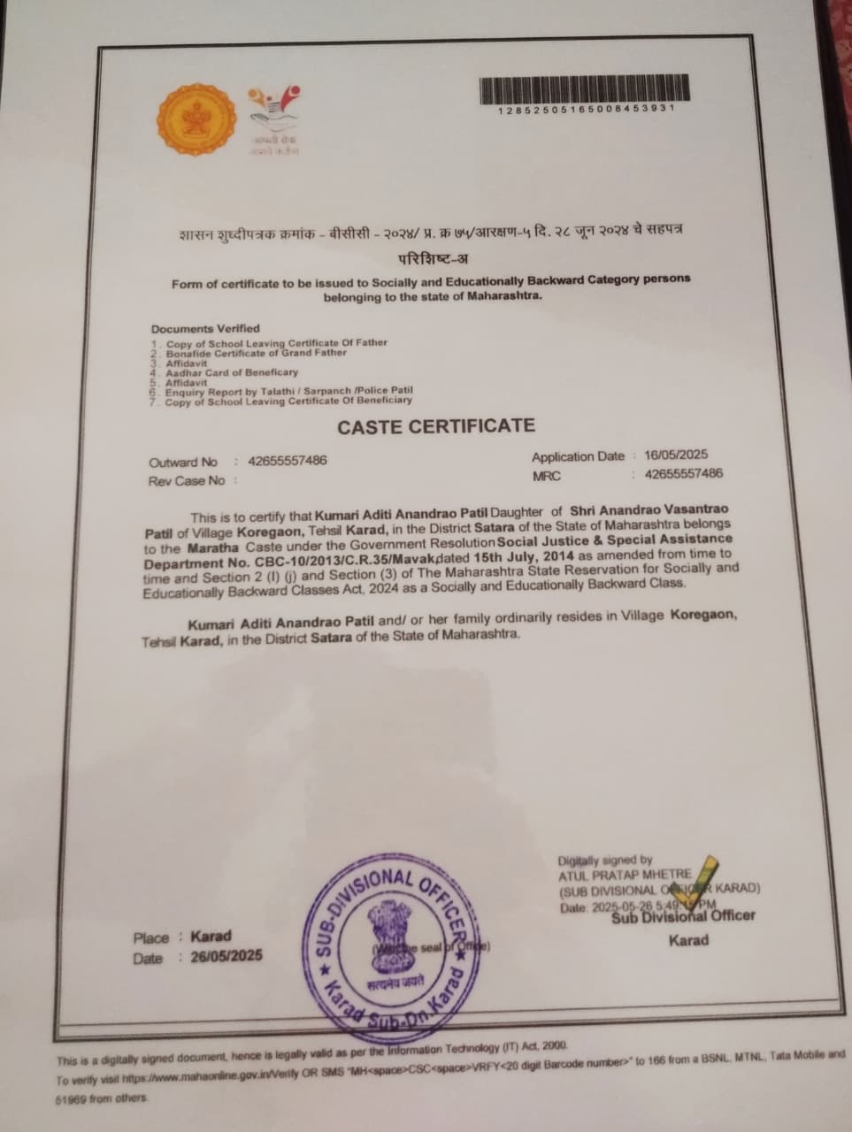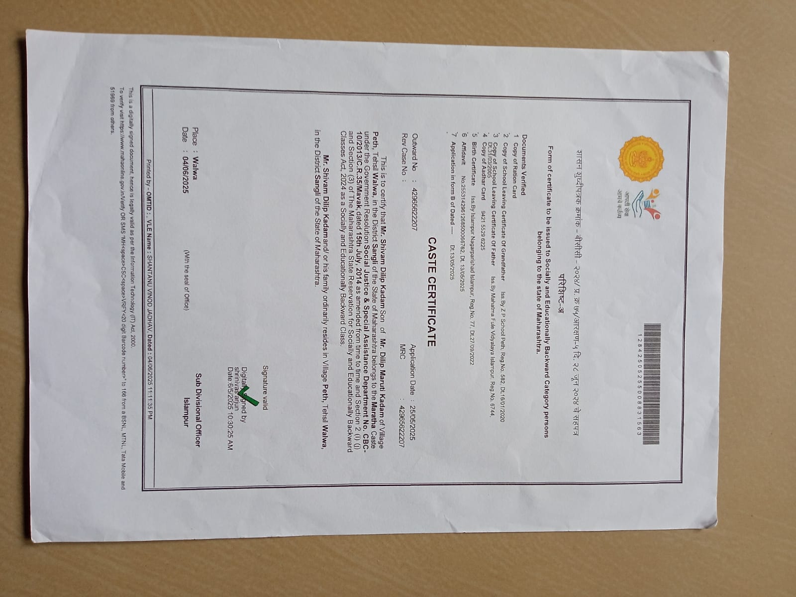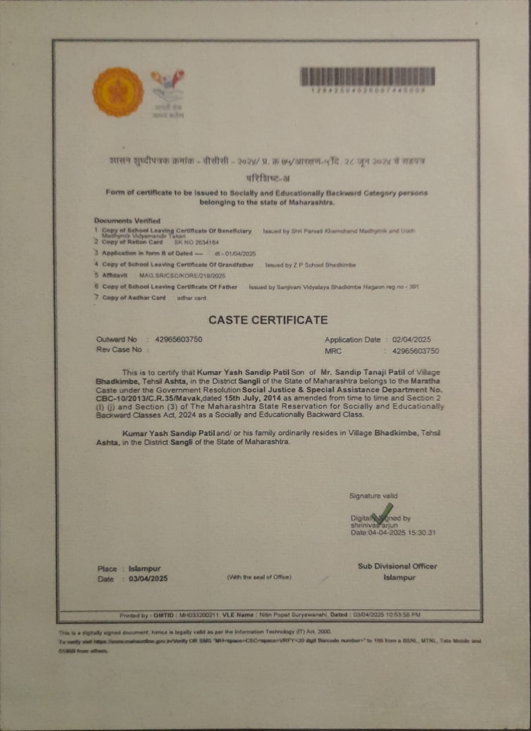 12/24/2025 9:39 PM 4024493 AIT-2500017_CasteCertificate.jpg