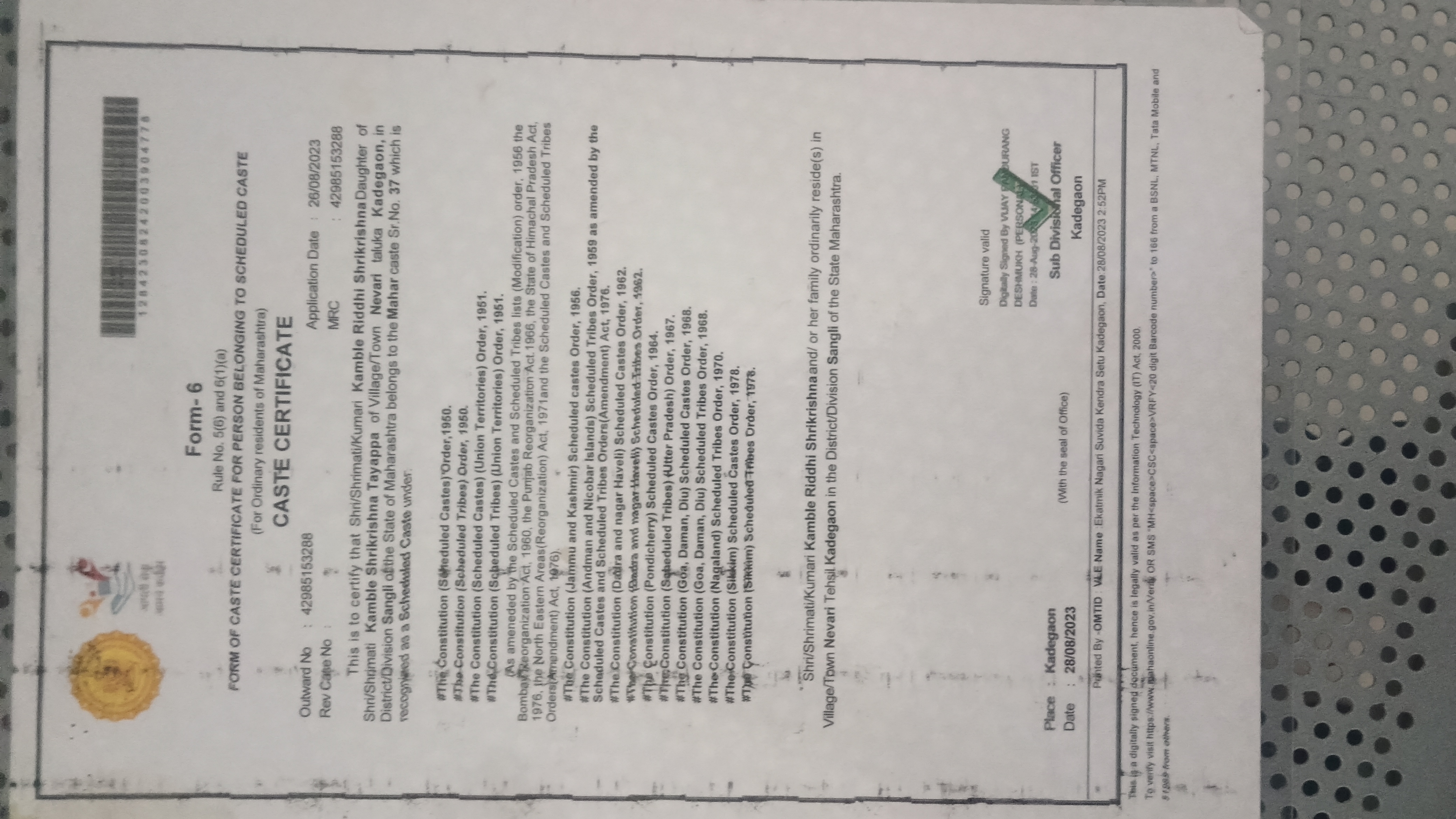 12/24/2025 9:40 PM 96400 AIT-2500236_CasteCertificate.jpg