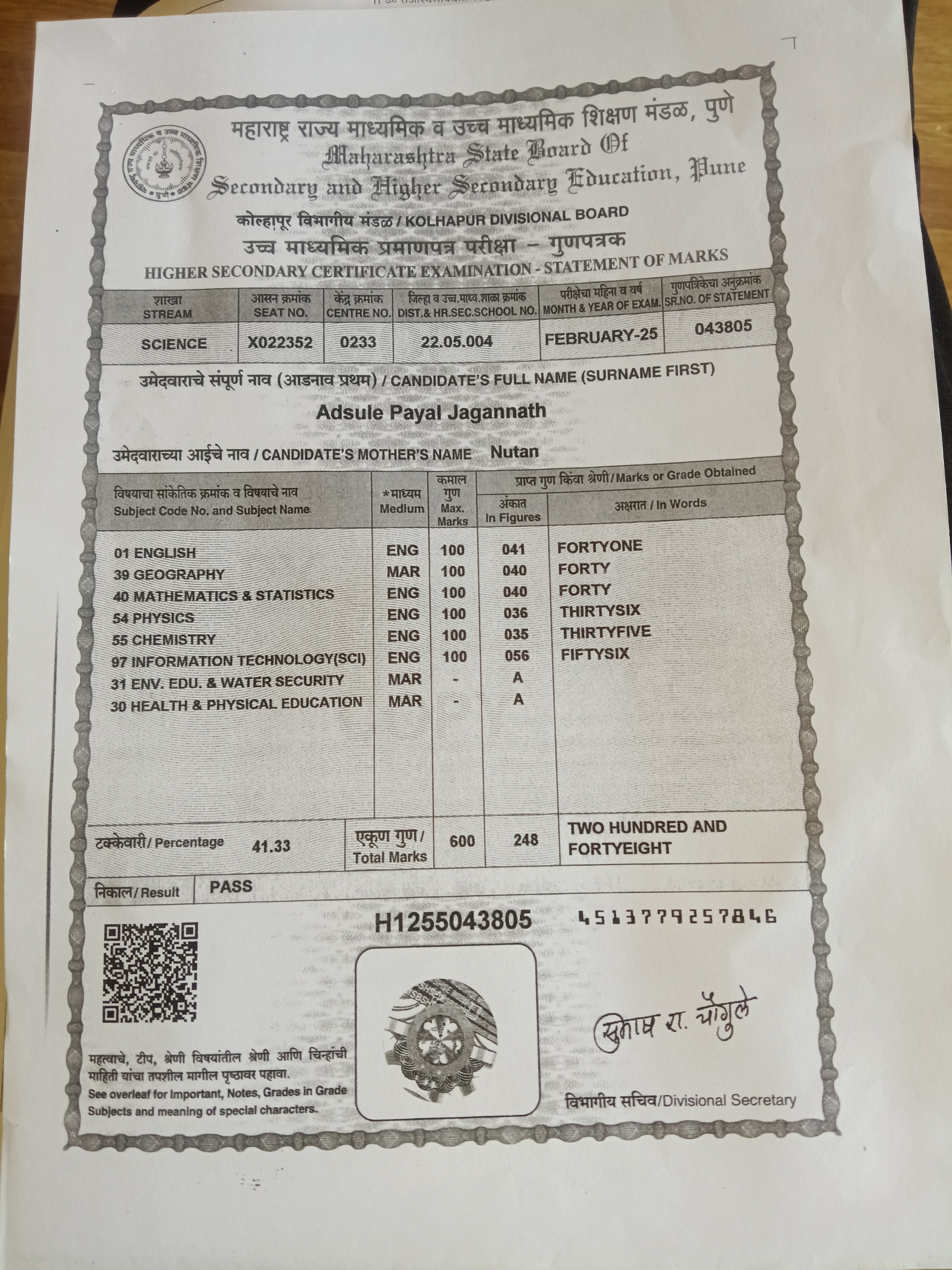 12/24/2025 9:46 PM 233142 AIT-2501166_HSCMarkSheet.jpg