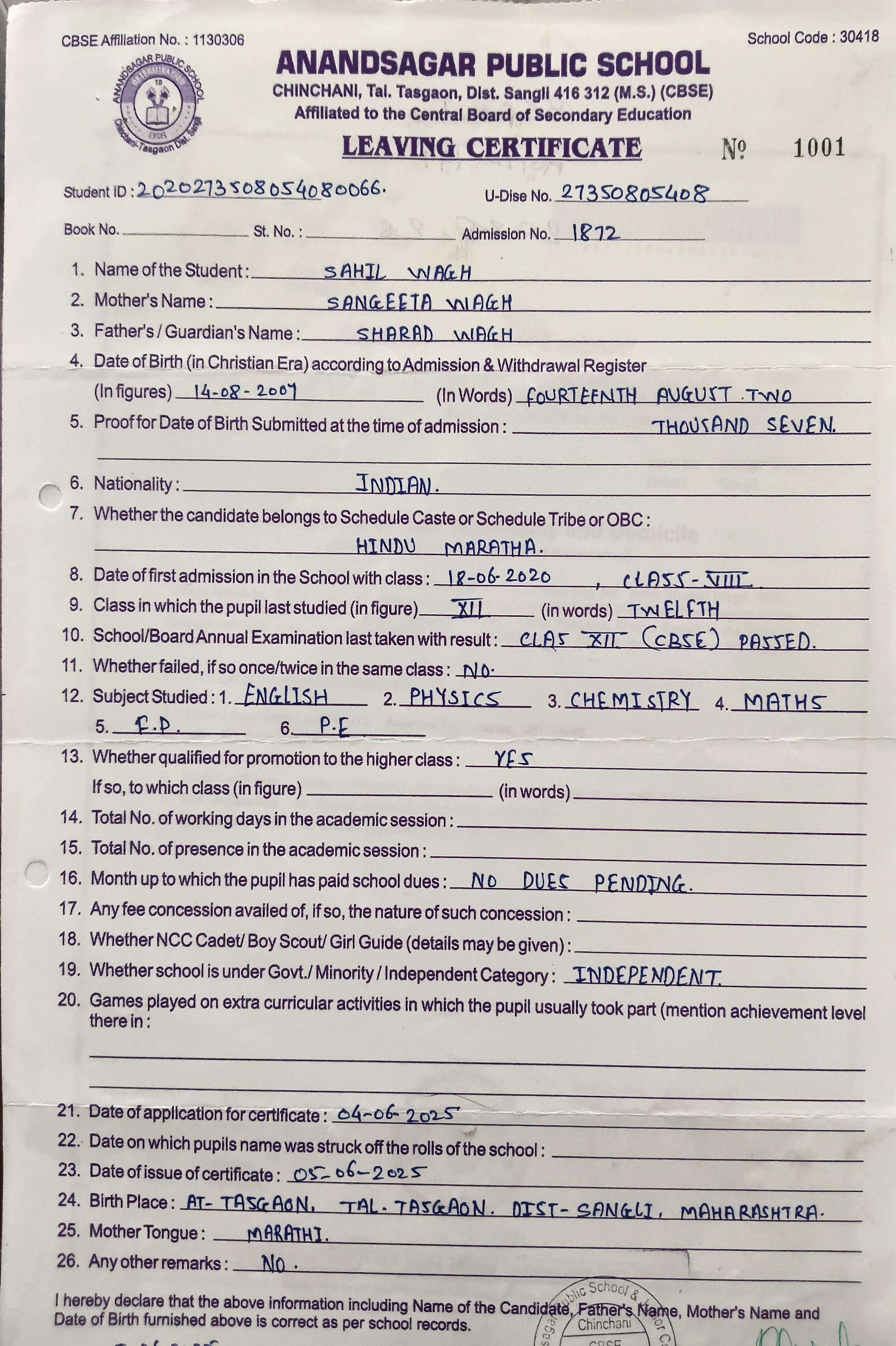 12/24/2025 9:39 PM 869504 AIT-2500008_HSCMarkSheet.png